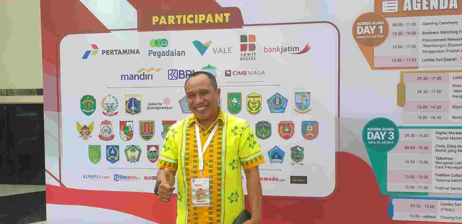 La Ode Muhammad Ishar Masiala, Pelaksana Tugas Kepala Dinas Perindustrian dan Perdagangan Kabupaten Muna Barat, berbicara dengan antusias pada hari pertama Indonesia Maju Expo & Forum 2024 di Jakarta Convention Center. Acara ini, bertema “Pembangunan Yang Berkualitas Inovatif & Ramah”, menarik perhatian dari berbagai Kabupaten Kota di seluruh Indonesia.