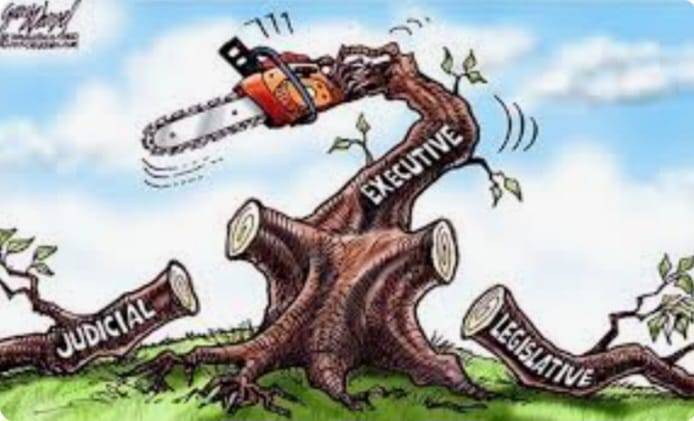 80 tahun merdeka, apakah 3 kekuasaan itu masih berfungsi sebagaimana dimaksud pendiri bangsa? Faktanya eksekutif (Presiden dan jajarannya) begitu dominan. Legislatif nyaris tidak lebih sebagai “bumper” keinginan eksekutif, dan Yudikatif yang nyaris tak beperan?