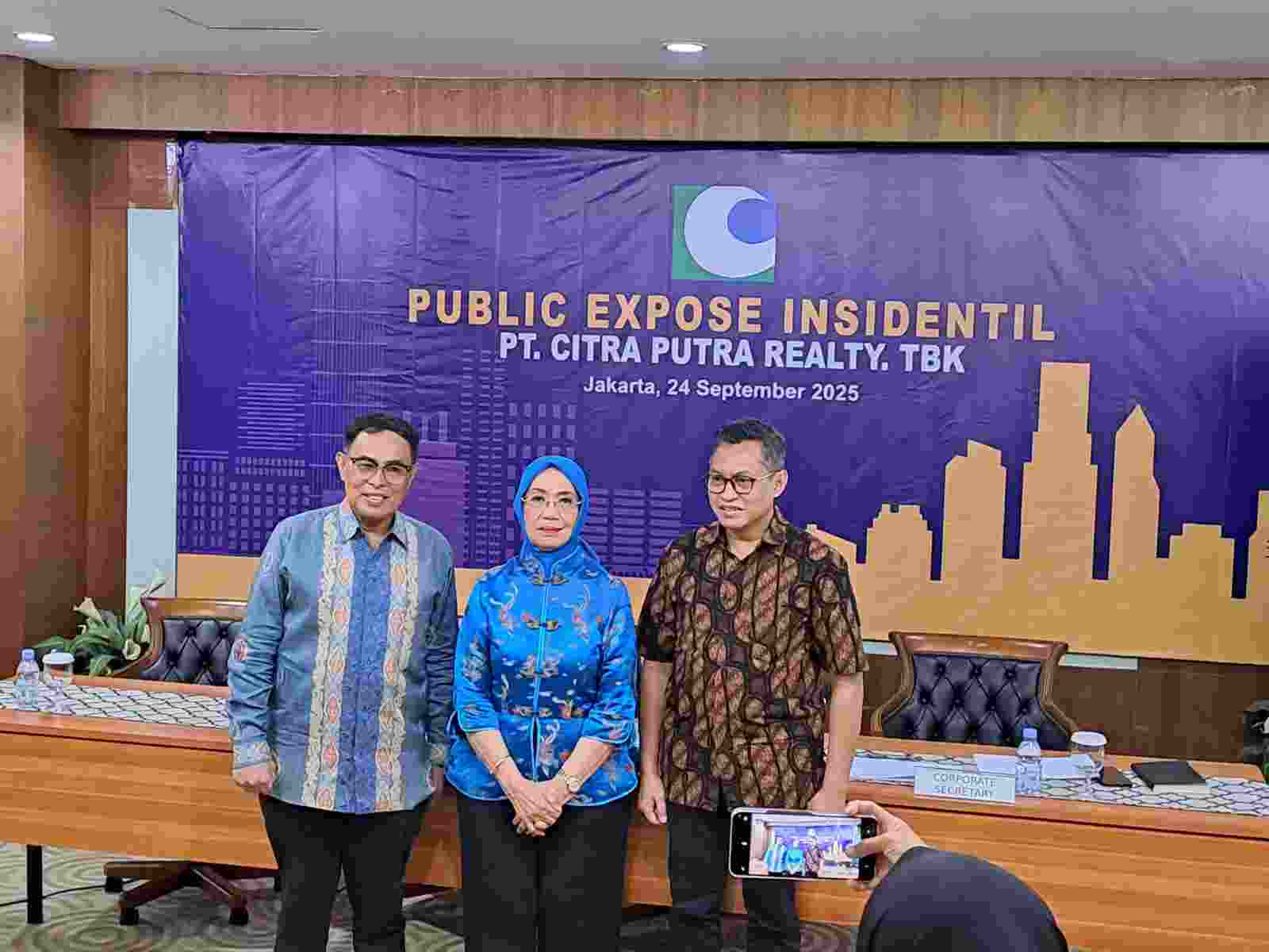 PT Citra Putra Realty Tbk (kode saham: CLAY) menyelenggarakan Paparan Publik (Public Expose) Insidentil Tahun 2025 pada Rabu, 24 September 2025, bertempat di Auditorium PT Citra Putra Realty Tbk, Gedung Clay lantai 18, Jakarta.
