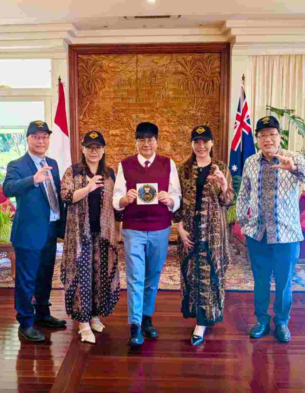 Senang sekali bisa berkunjung ke Wisma Indonesia di Canberra Australia, audiensi dan bersilaturahmi dengan Bpk Dr Siswo Pramono Duta Besar RI, untuk Australia dan Vanuatu, beliau sangat humble, kami mengenalkan CEO Indonesia, menyematkan PIN dan pemberian merchandise dengan logo CEO Indonesia,” kata Trisya Suherman sebagai Ketua Global CEO Indonesia yang juga Ketua Pengusaha Bela Bangsa.