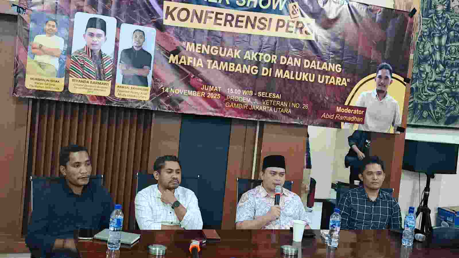 Upaya membongkar praktik mafia tambang di Maluku Utara kembali mengemuka dalam diskusi publik bertema “Menguak Aktor dan Dalang Mafia Tambang di Maluku Utara” yang digelar di Aula Prodem Veteran Jakarta, Jumat (14/11/25).