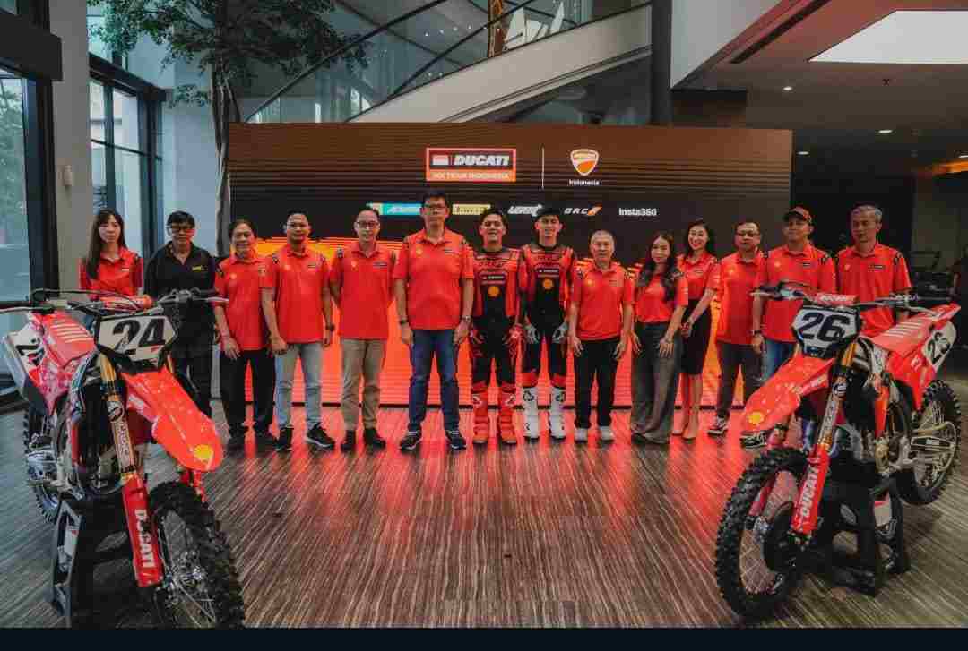 Hari ini merupakan tonggak bersejarah bagi Ducati MX Team Indonesia yang secara resmi dikukuhkan. Jimmy Budhijanto selaku Team Principal/Owner memperkenalkan seluruh jajaran manajemen dalam struktur organisasi tim balap ini yang telah la rancang dengan matang tahun 2025 lalu. la membentuk formasi terbaik guna menghasilkan prestasi dan performa maksimal sehingga mendominasi kompetisi motocross nasional maupun internasional. Tak tanggung-tanggung, legenda motocross Indonesia; Johny Pranata, dipilih Jimmy sebagai Team Manager, yang bertanggung jawab menyusun strategi dan memilih dua pembalap muda namun berpengalaman dengan prestasi gemilang; Diva Ismayana dan Hilman Maksum. “Permata beroda” yang dipilih untuk mendukung aksi keduanya saat berlaga di atas lintasan tanah adalah Ducati Desmo450 MX.