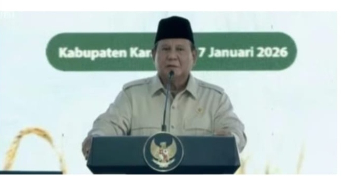 Presiden RI Prabowo Subianto menghadiri panen raya di Kabupaten Karawang, Jawa Barat, Rabu (7/1/2026). Dalam kesempatan tersebut, Presiden secara resmi mengumumkan keberhasilan Indonesia kembali mencapai swasembada pangan.