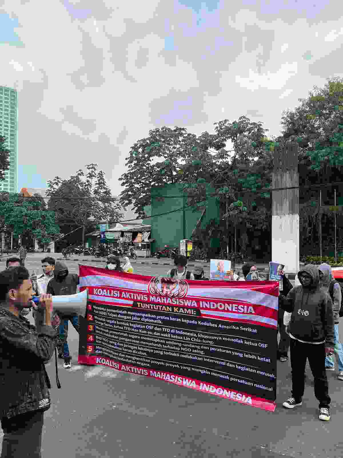 Roberto dan Usman selaku Kordinator Aksi menggelar Aksi Unjuk Rasa di Gedung DPR – RI untuk mendesak pemerintah memperketat aturan terkait organisasi Asing yang bergerak di Indonesia .